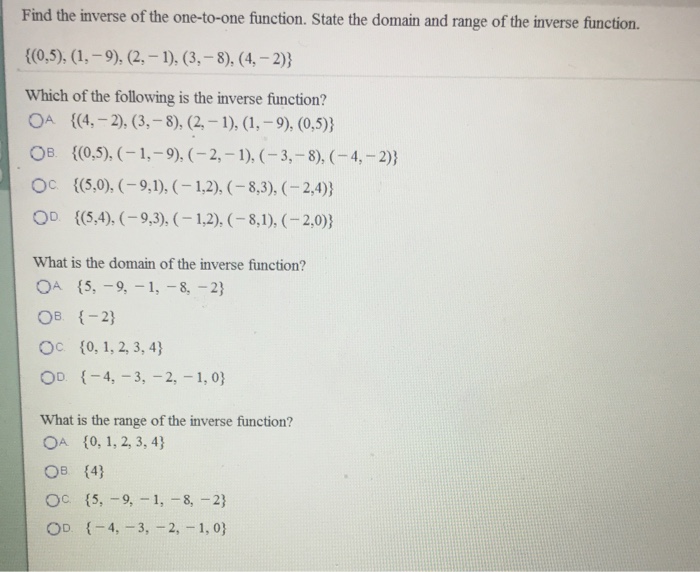 Solved Find The Inverse Of The One To One Function State Chegg Com