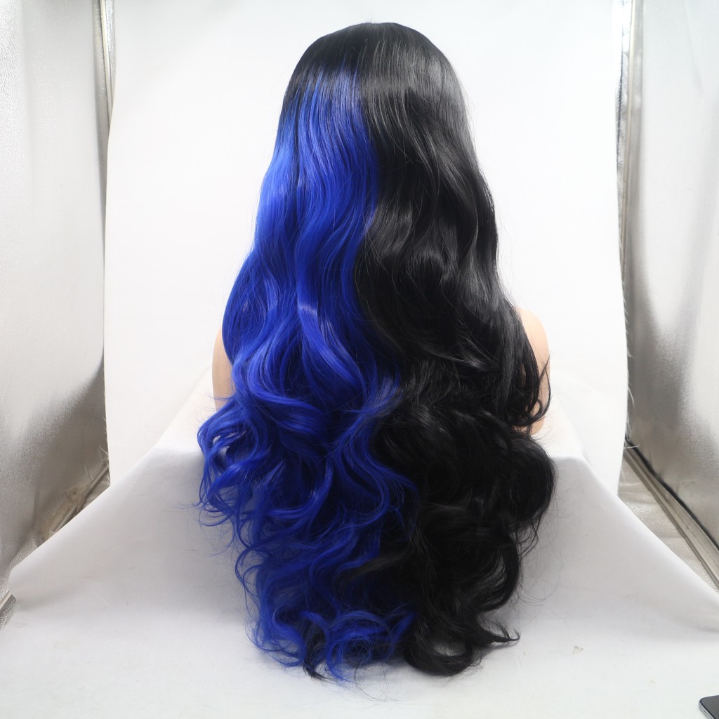 Amazon Com Aboree Lace Front Wig For Women Half Black And Half Blue Color Wigs Long Wavy Synthetic Wigs For Halloween Cosplay Party 24 Inches Beauty
