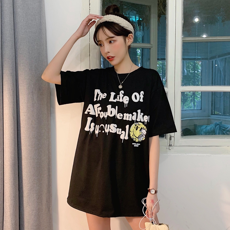 Ready Stock T Shirt Loose Long Real Half Short Printing Photo New Letter Sleeve Thin T Shirt Sum Shopee Indonesia
