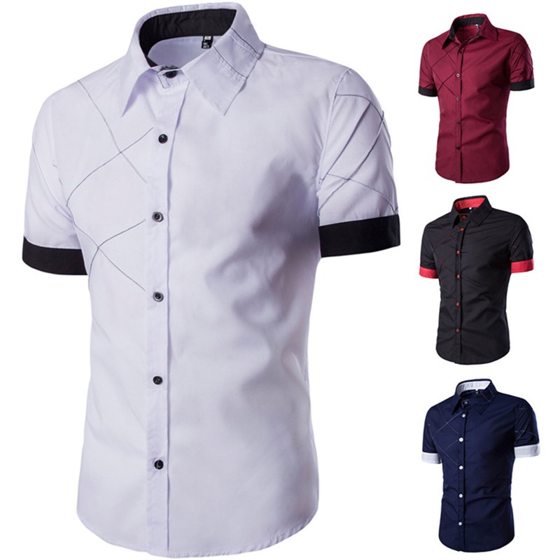 Brand Men Shirt 2016 Summer Fashion Design Half Sleeve Mens Slim Fit Dress Shirts Casual Stylish Chemise Homme Camisa Social Xxl Shirt Press Shirt Collarshirt Shirt Aliexpress