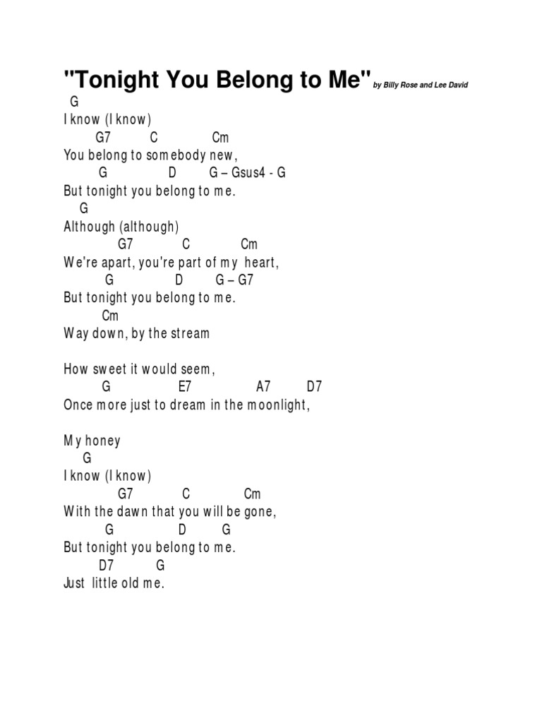 Song Lyrics With Guitar Chords For Tonight You Belong To Me Patience Prudence 1956